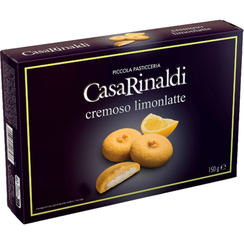 "Casa Rinaldi" Cremoso Limonlatte — печенье c лимонно-молочным кремом, созданное по традиционной итальянской рецептуре из натуральных ингредиентов. Нежное, в меру сладкое, оно доставляет сплошное удовольствие во время чаепития. Также выпечка замечательно сочетается с кофе, молоком, кофейными и молочными коктейлями. Это настоящее наслаждение для сладкоежек!