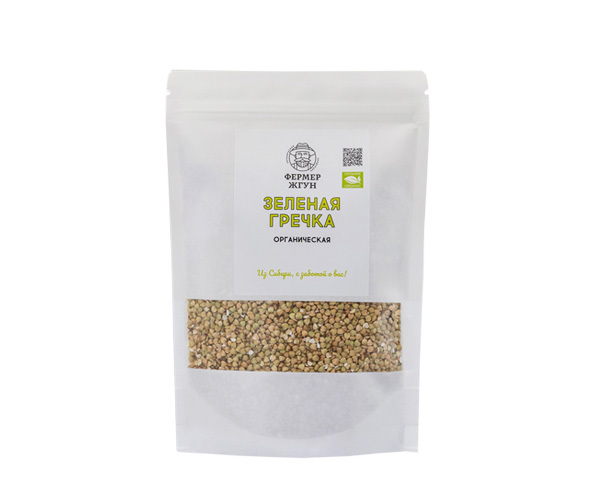 Органическая зеленая гречка от бренда "Фермер Жгун" - натуральная, живая, полезная крупа, состоящая из цельных необжаренных зерен (в отличие от коричневой).